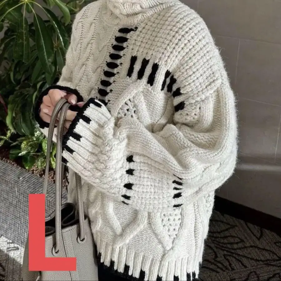 큼직한 니트 직물이 귀여운, 존재감 있는 니트 스웨터입니다.