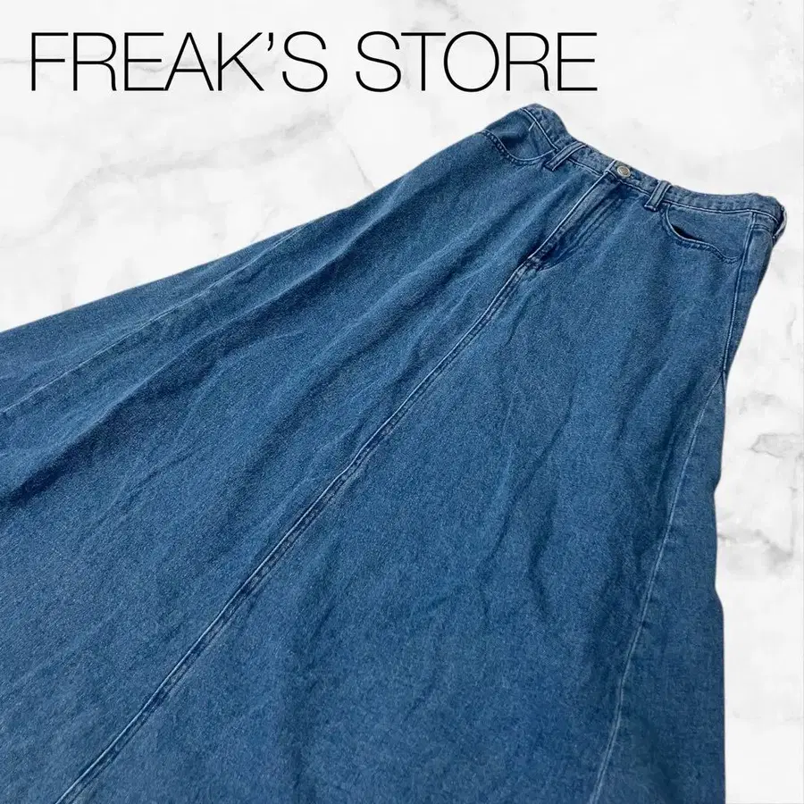 [ 프릭스스토어 ] 하의 스커트 블루 롱 기장 플레어 스커트 데님 원단