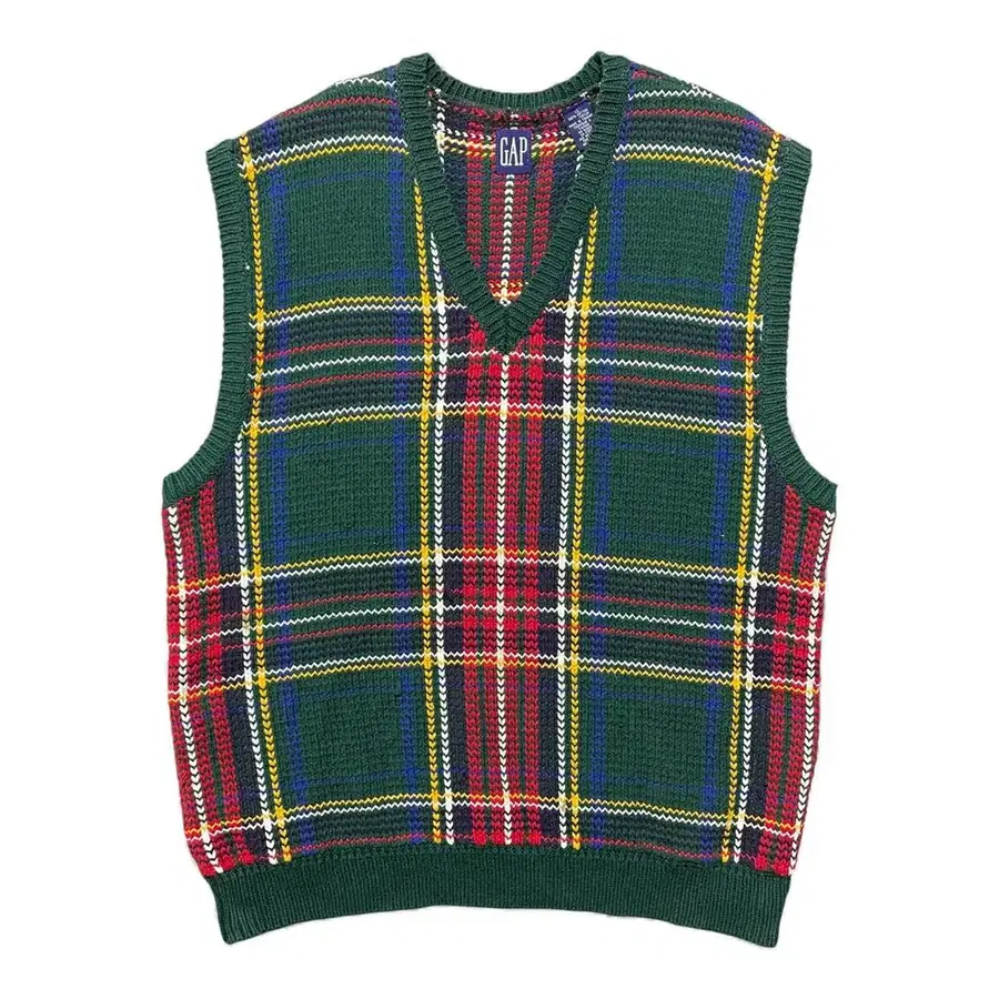 USA 구제 의류 90S GAP 빈티지 올드 갭 코튼 니트 베스트 타탄 체크 니트 베스트 남성용 XL 그린