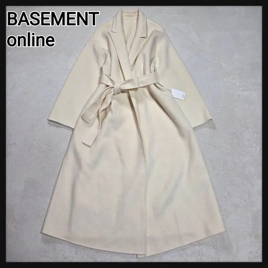 BASEMENT online(베이스먼트 온라인)의 울 리버 롱 코트입니다. 택 포함 새상품, 벨트 포함, 더블 페이스, 여배우 옷깃, 아이보리, FREESIZE.