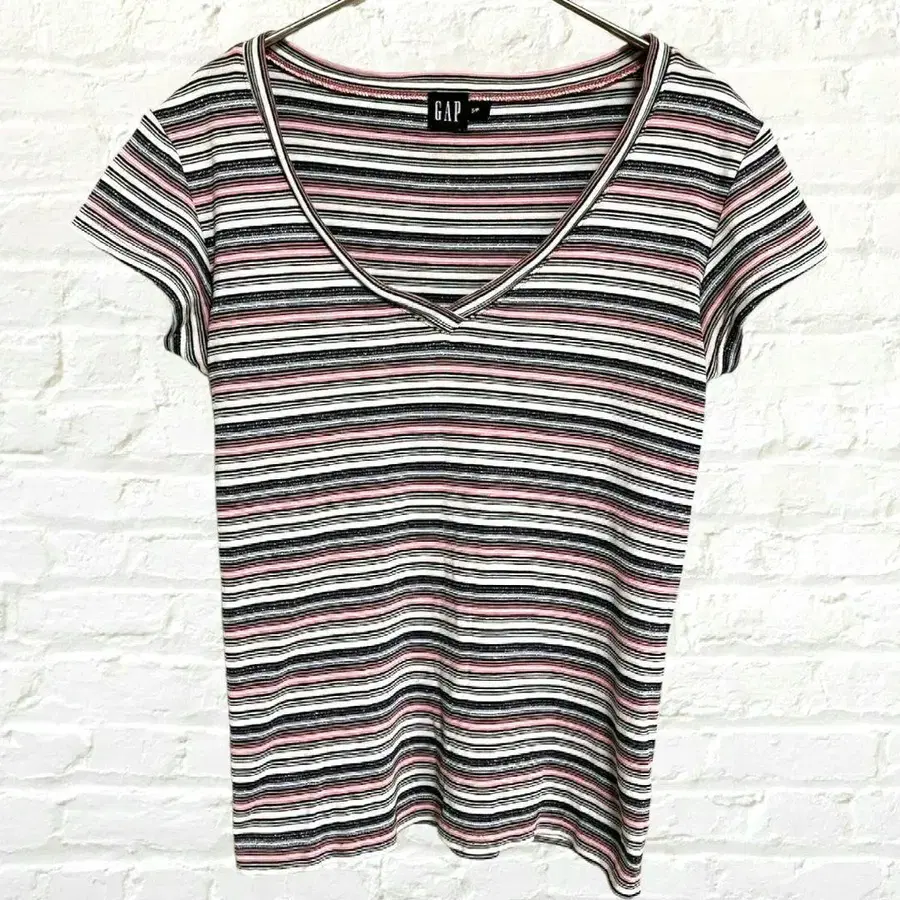 갭 멀티 보더 T셔츠 프렌치 슬리브 V넥 티셔츠 라메