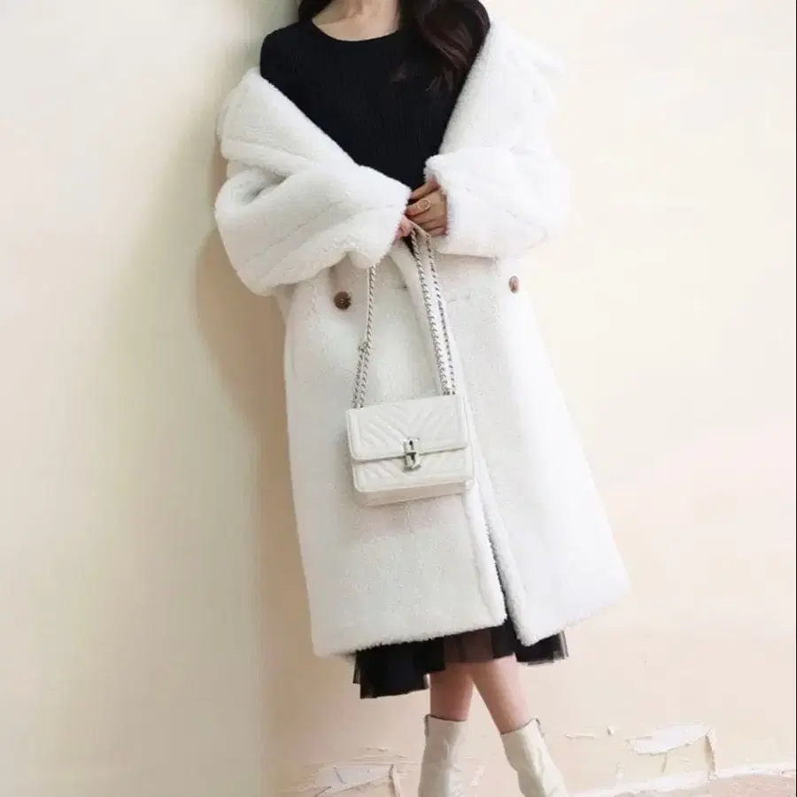 여성용 포근하고 세련된 롱 보아 코트 따뜻한 울