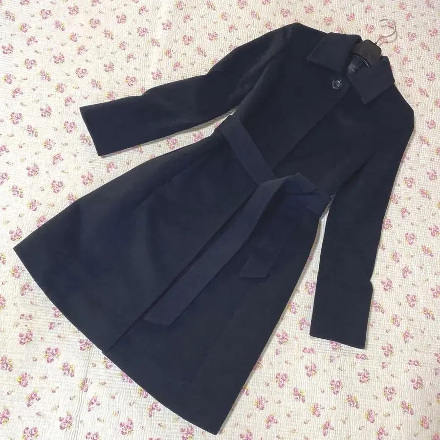 캐시미어 100% 이네드 롱 코트 더블 벨트 A라인 블랙 9호 M