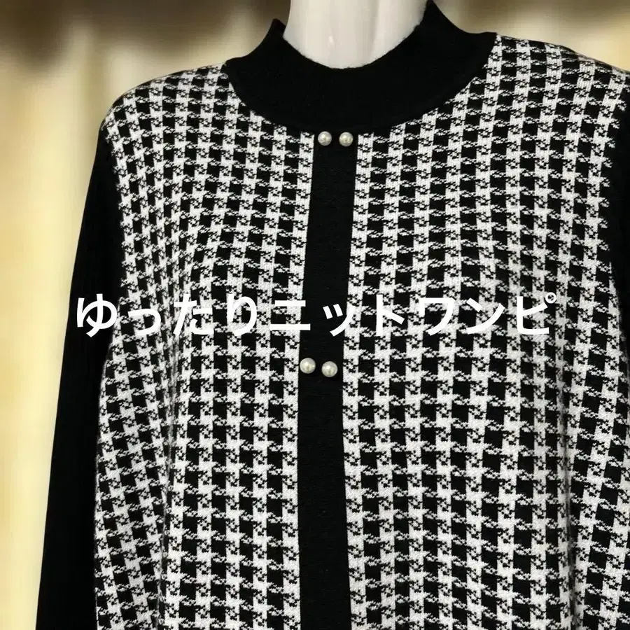 체크 무늬 긴팔 니트 원피스