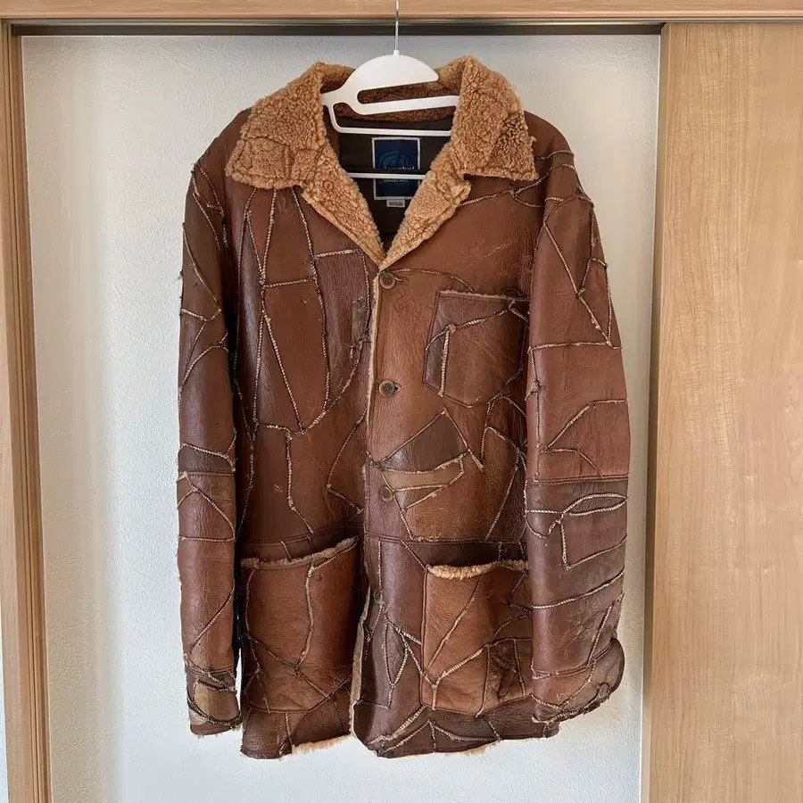 패치워크풍 브라운 가죽 자켓 빈티지 가공