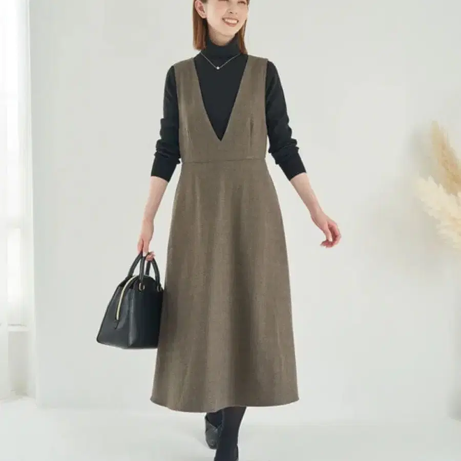 얇은 터틀 니트나 스위트한 블라우스를 레이어드하여 엘레강트한 코디로.