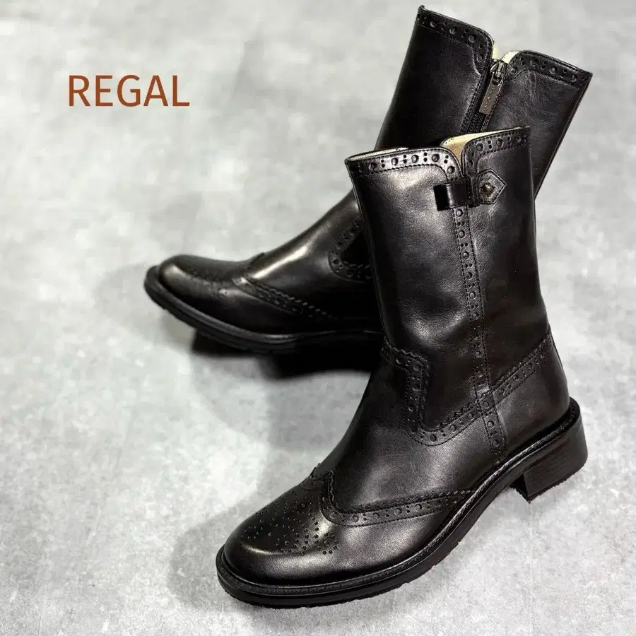 [미사용 새상품] 리갈 윙팁 사이드 지퍼 부츠 23.5cm 블랙