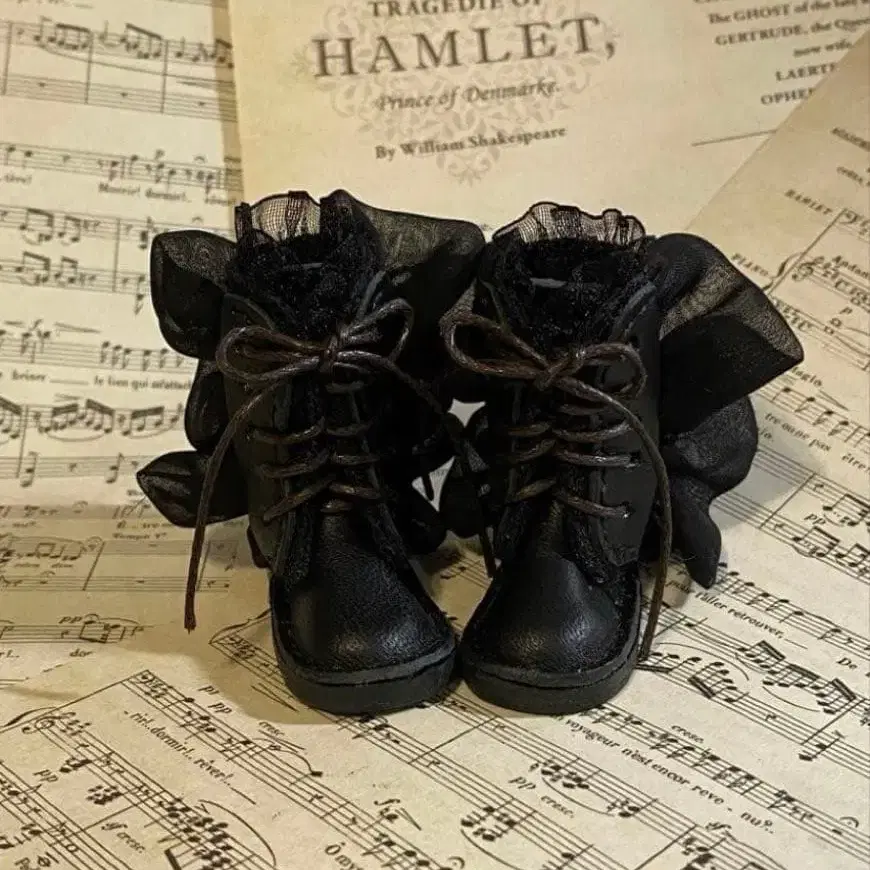 1/6 인형용 사이즈: 귀여운 프릴&레이스 부츠 블랙