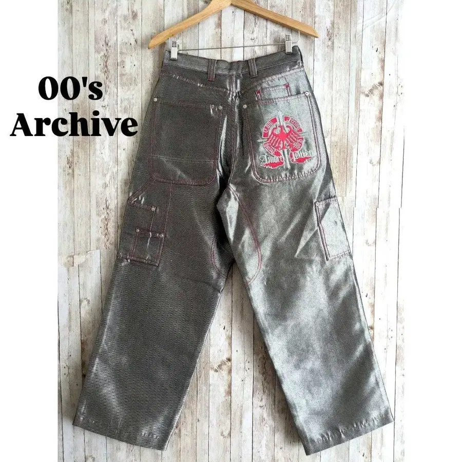 상품명 - 초와이드 배기 데님 팬츠 ☆ 광택 ☆ 자수 ☆ 실버 데님 ☆ 배기 ☆ 와이드 ☆ Y2K ☆ 헤이세이 갸루