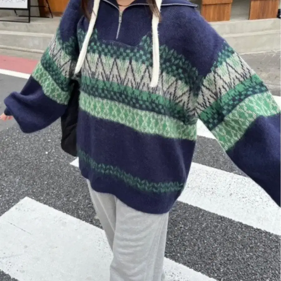 노르딕 무늬 하프 지퍼 니트