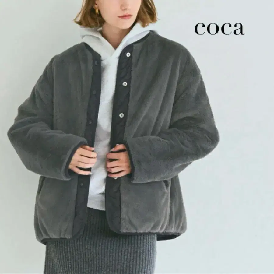 새상품 코카 워셔블 리버서블 퀼팅 블루종 차콜