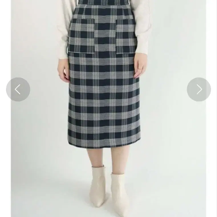 이번 시즌 트렌디한 컬러의 체크 무늬 타이트 스커트. 부드러운 느낌을 주는 뉴앙스 컬러의 체크 무늬와 포켓이 악센트가 됩니다. 무릎 아래 기장의 타이트 실루엣으로, 세로 라인을 날씬하게 보이게 해주는 디자인입니다. 백 허리는 지퍼 사양이며, 니트나 블라우스를 IN 스타일로 연출해도 깔끔하게 보입니다.