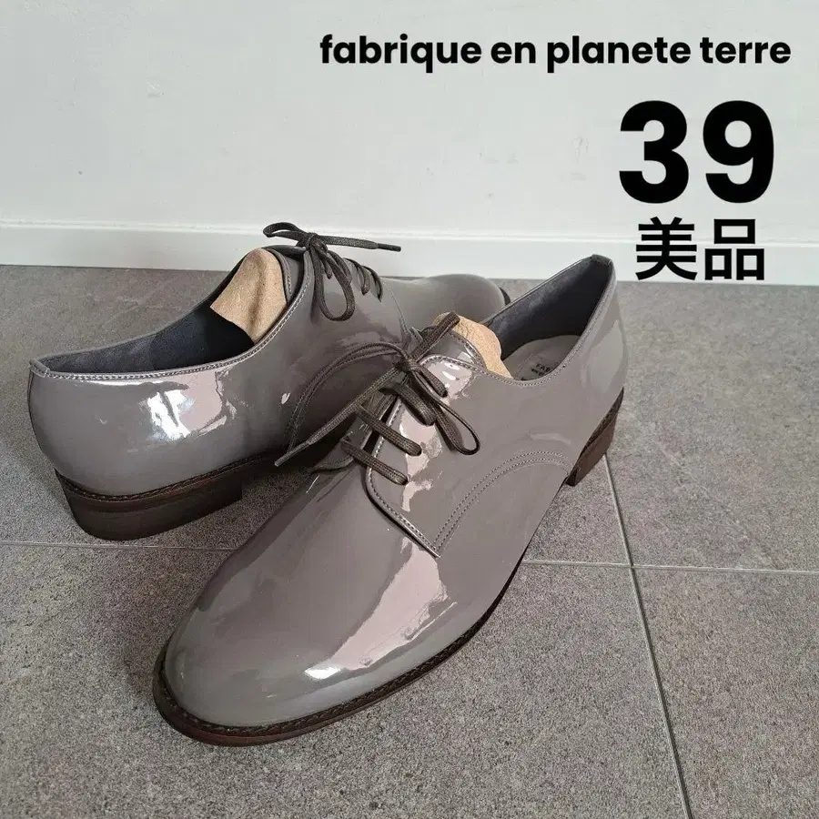 [시착만 한 상품] 에나멜 그레이 레이스업 슈즈 드레스 슈즈 24.5cm
