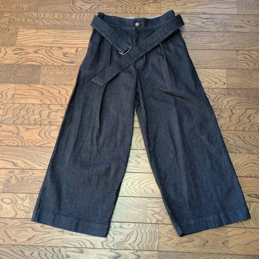 다크 그레이 데님 와이드 팬츠 벨트 포함