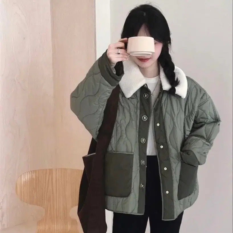 올리브색 퀼팅 자켓