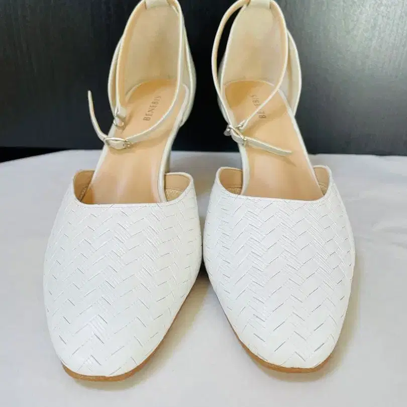 BENEBIS 베네비스 화이트 뜨개질 하이힐 240