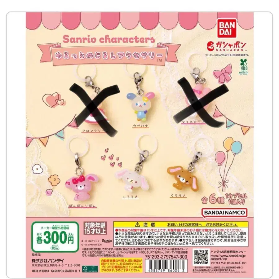 산리오 윳토메지루시 액세서리 우사하나 시로 우사 쿠로 우사 가챠