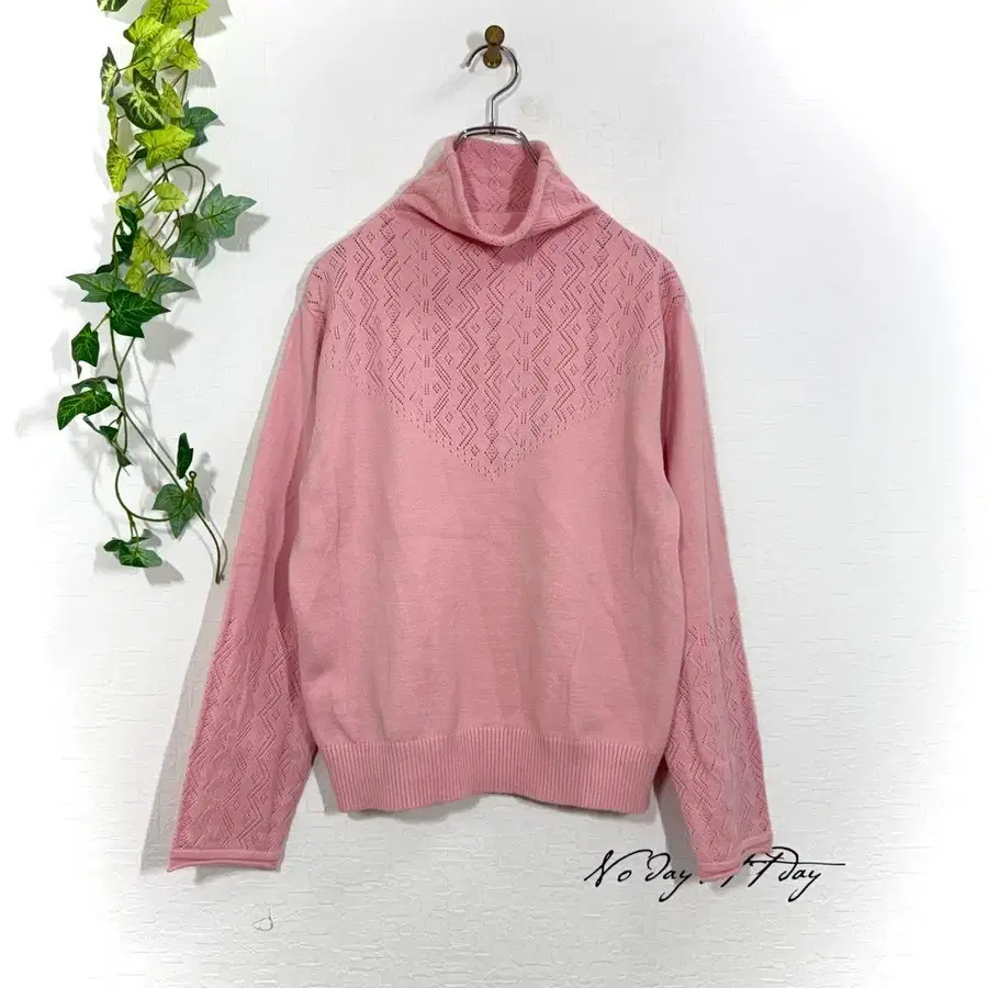 Renan 레난 하이넥 니트 스웨터 LL 핑크 복숭아색 시스루 짜임