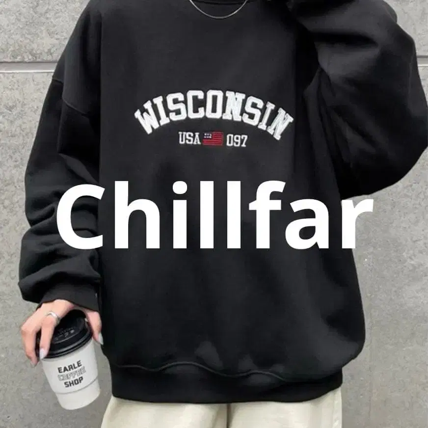 Chillfar 자수 패치 아치 로고 맨투맨/블랙