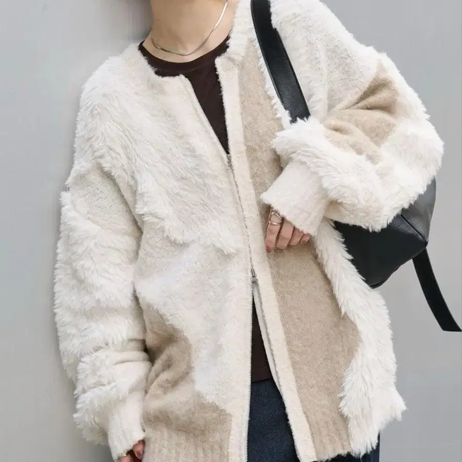 모노마트 복슬복슬 볼륨 샤기 MIX 더블 지퍼 니트 가디건