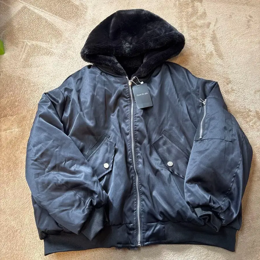[새상품] 리버서블 후드 부착 봄버 자켓 블랙