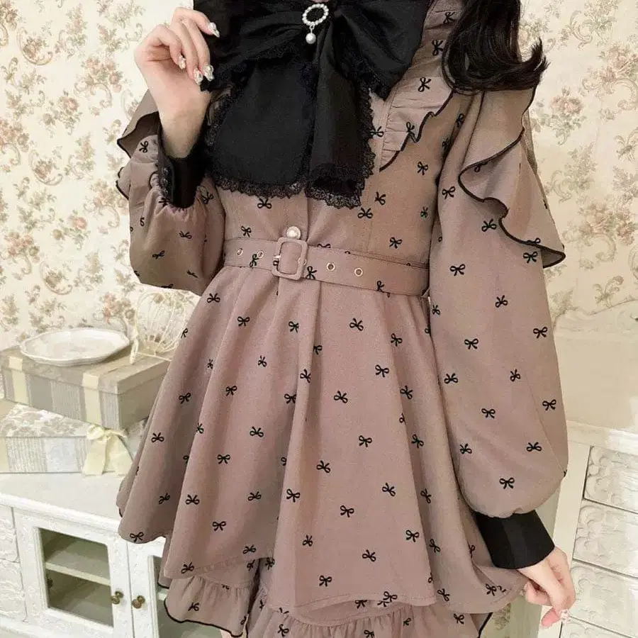 ROJITA 리본 무늬 셋업 핑크 브라운