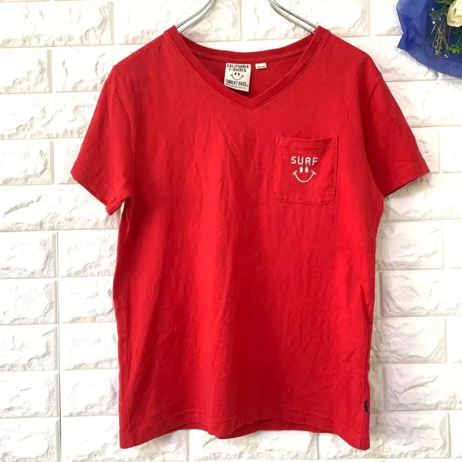 스마일리 페이스 T셔츠 V넥 캘리포니아 니코짱 스마일 구제 의류