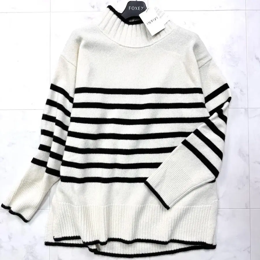미사용 인디비 캐시미어 혼방 백 슬릿 보더 니트