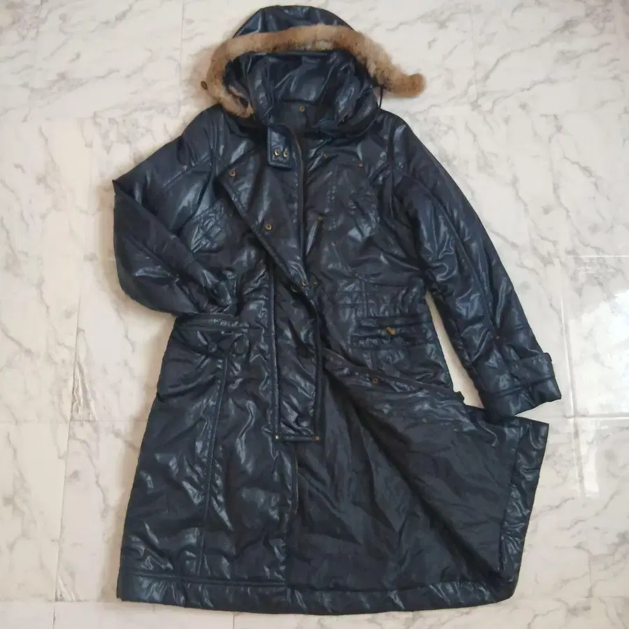 네이비 롱 다운 코트 포켓 있음 방한 경량