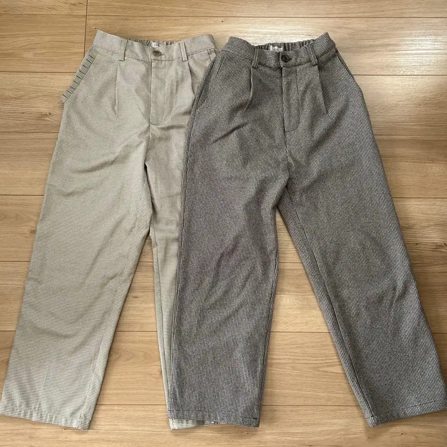 베이지 팬츠는 멀리서는 보이지 않지만 보풀이 몇 군데 있습니다. 얇은 소재이므로 봄/가을, 이너를 입으면 겨울에도 착용 가능합니다.