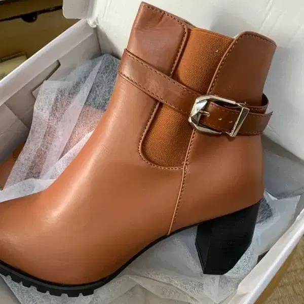 가죽 브라운 부티 버클 포함 숏부츠 부츠 브라운 계열