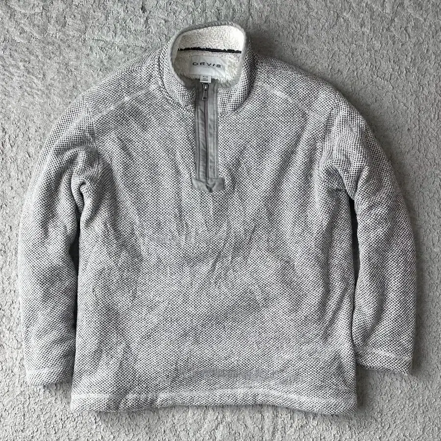 프론트는 하프 지퍼이며, 표기 사이즈는 XL, 어깨 너비 약 52cm, 가슴 너비 약 63cm, 기장 약 70cm, 소매 길이 약 57cm입니다.