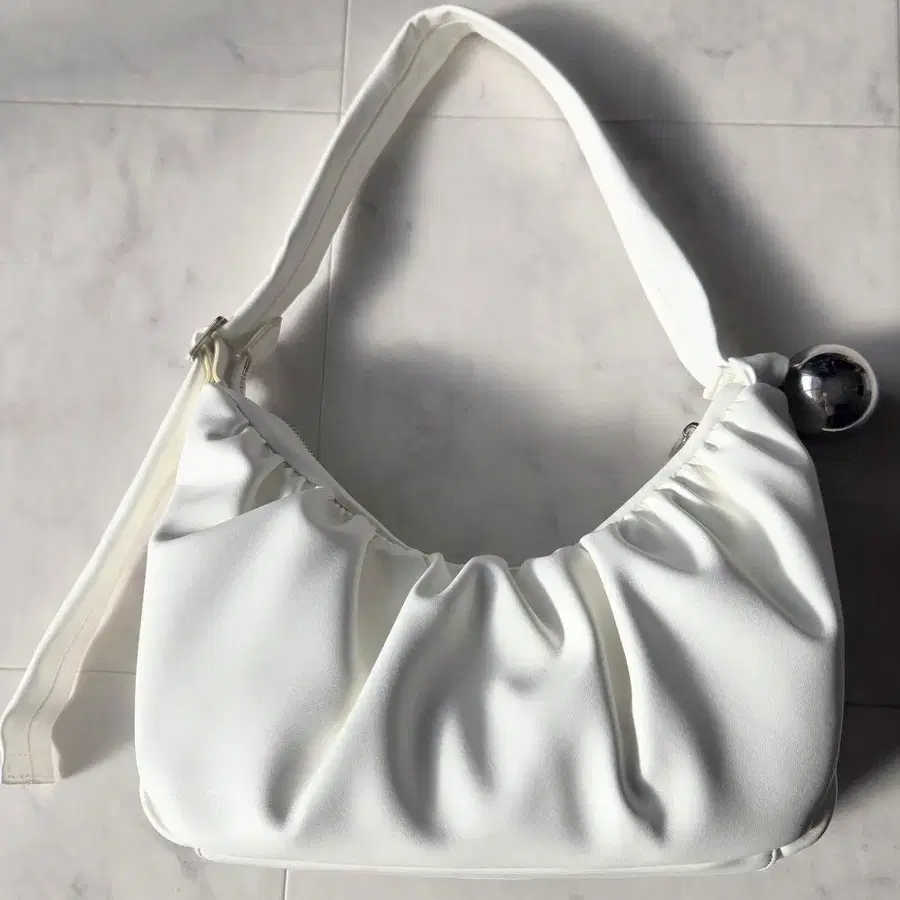 엘렌딕 메탈 볼 개더백 화이트 핸드백 숄더