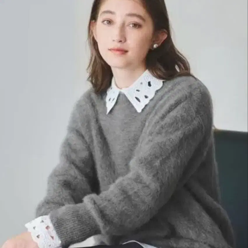 여유로운 사이즈감의 박스 실루엣 크루넥 니트.
