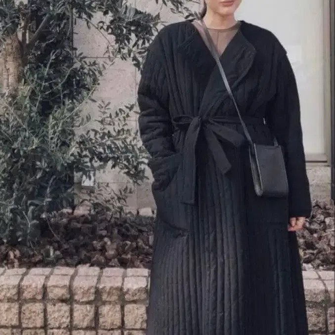 블랙 퀼팅 자켓 허리 벨트 포함