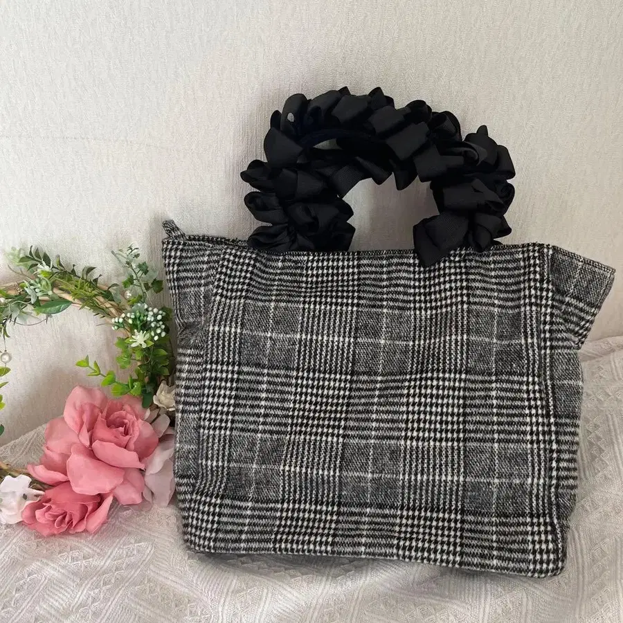 [ 새상품급 ] 체크 무늬 토트백 리본 핸들