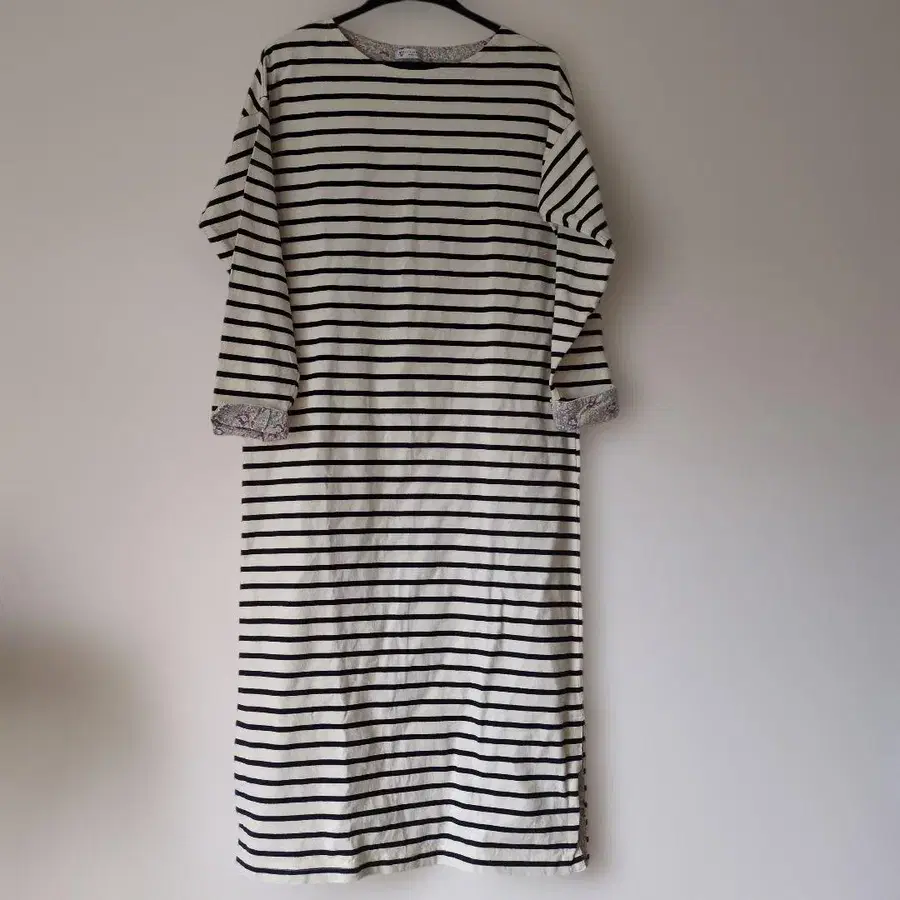 애프터눈 티 보더 무늬 긴팔 원피스 아이보리/네이비