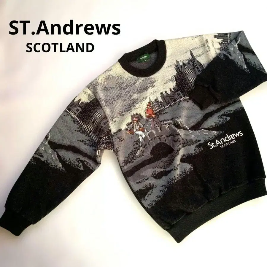 스웨터 프론트 부분의 로고와 인물은 자수입니다.