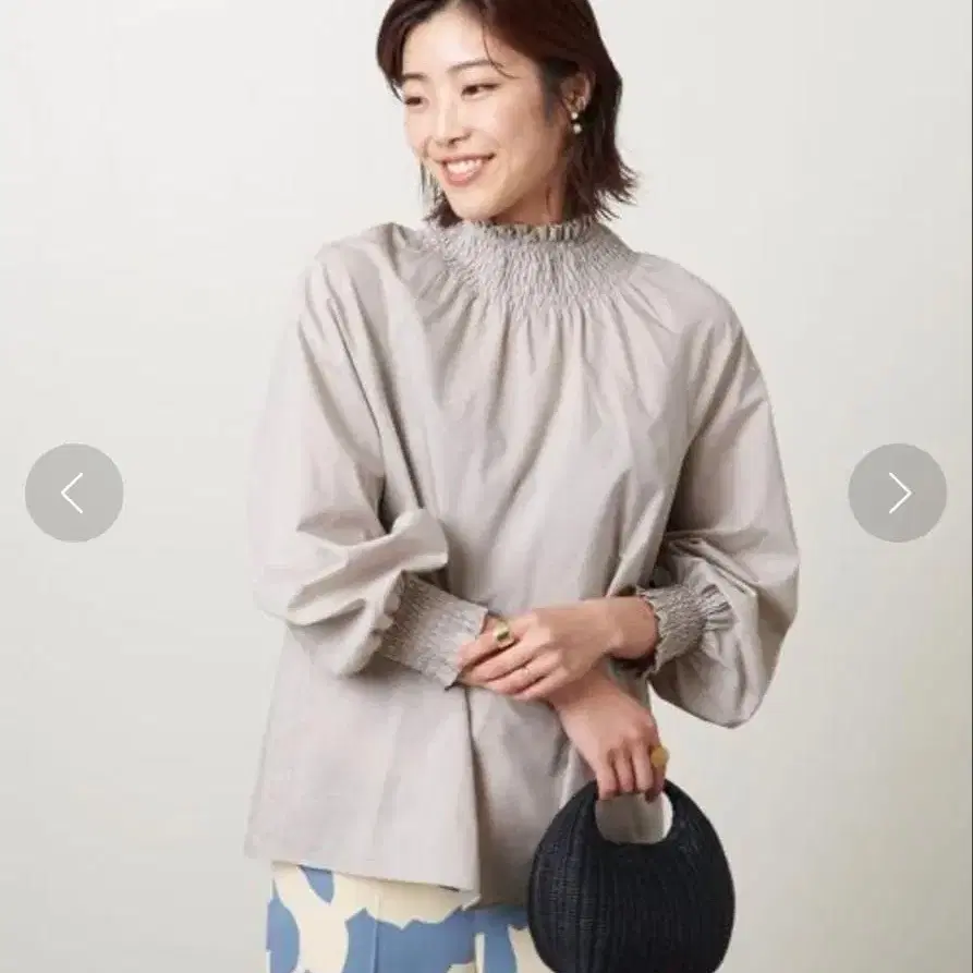 UNITED ARROWS 셔링 하이넥 블라우스 B