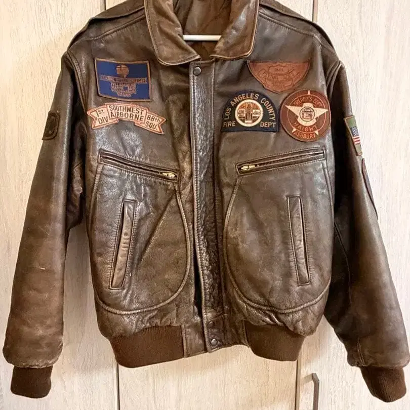 천연 가죽 (소가죽) 플라이트 자켓입니다.