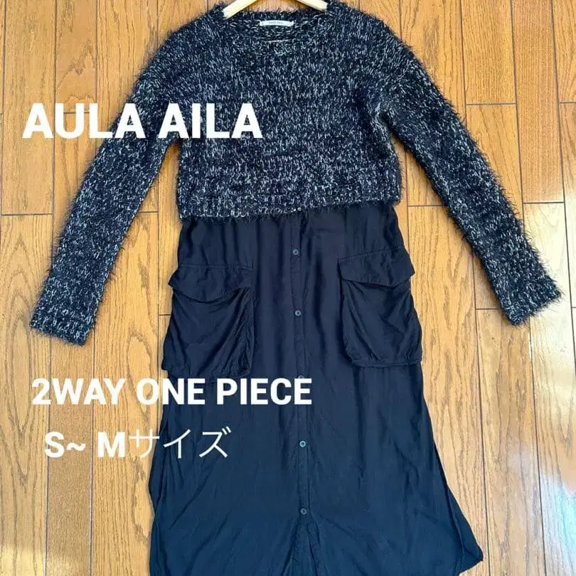 AULA AILA 아우라 아이라 원피스 2way 니트 절개 블랙