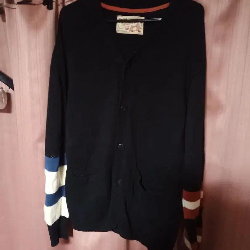 TK 다케오 키쿠치 코튼 100% 스트라이프 소매 블랙 가디건