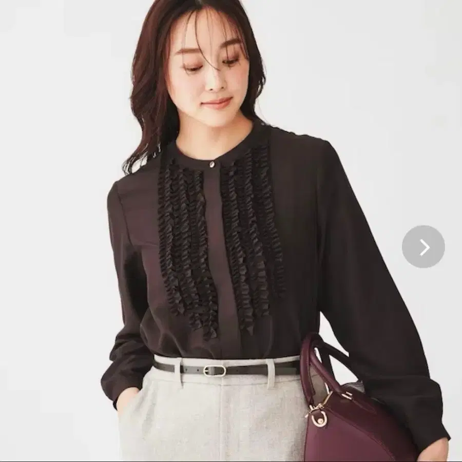 untitled 프릴 달린 긴팔 셔츠 브라운