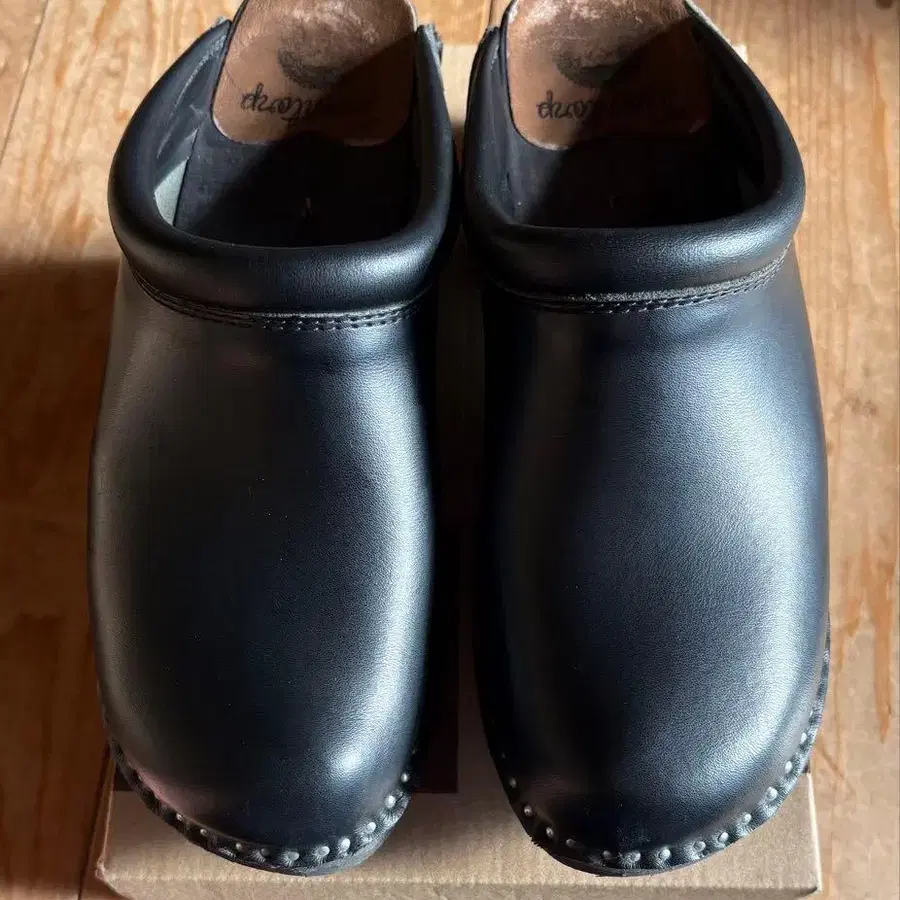 트로엔토프 TROENTORP 블랙 가죽 클로그 샌들 39