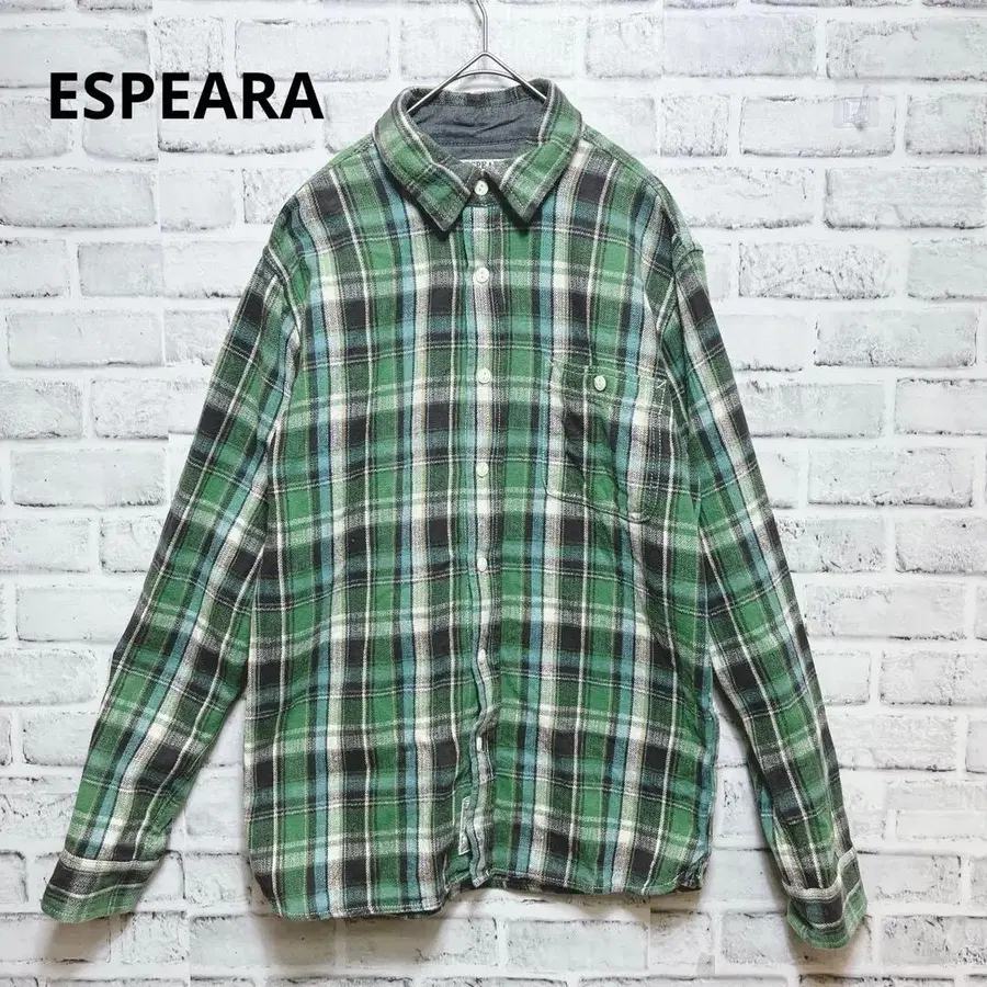 [에스페라] 플란넬 셔츠 체크 무늬 그린 코튼 100% 남성용 M