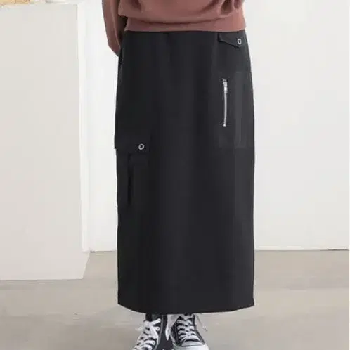 오샤레 워커 포켓 타이트 스커트 블랙