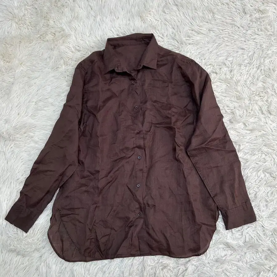 린넨 100% 긴팔 셔츠 시어 셔츠 브라운