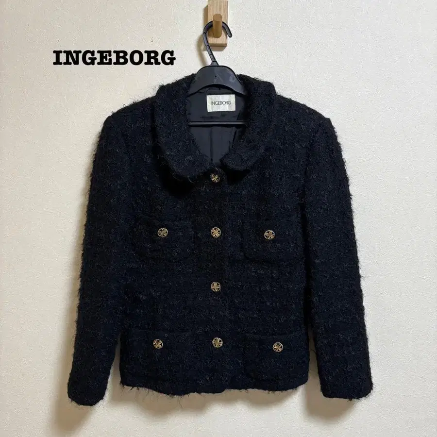 잉게보그 모헤어 혼방 샤기 자켓 블랙 골드 버튼