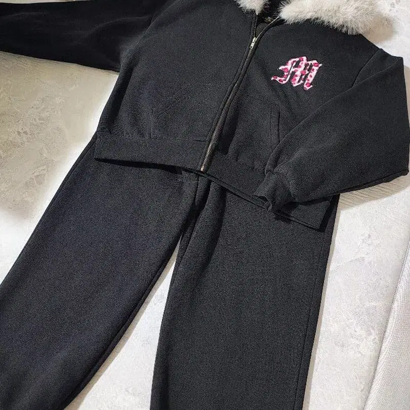 후드 부착 블랙 셋업 PINK 표범 무늬 로고 F