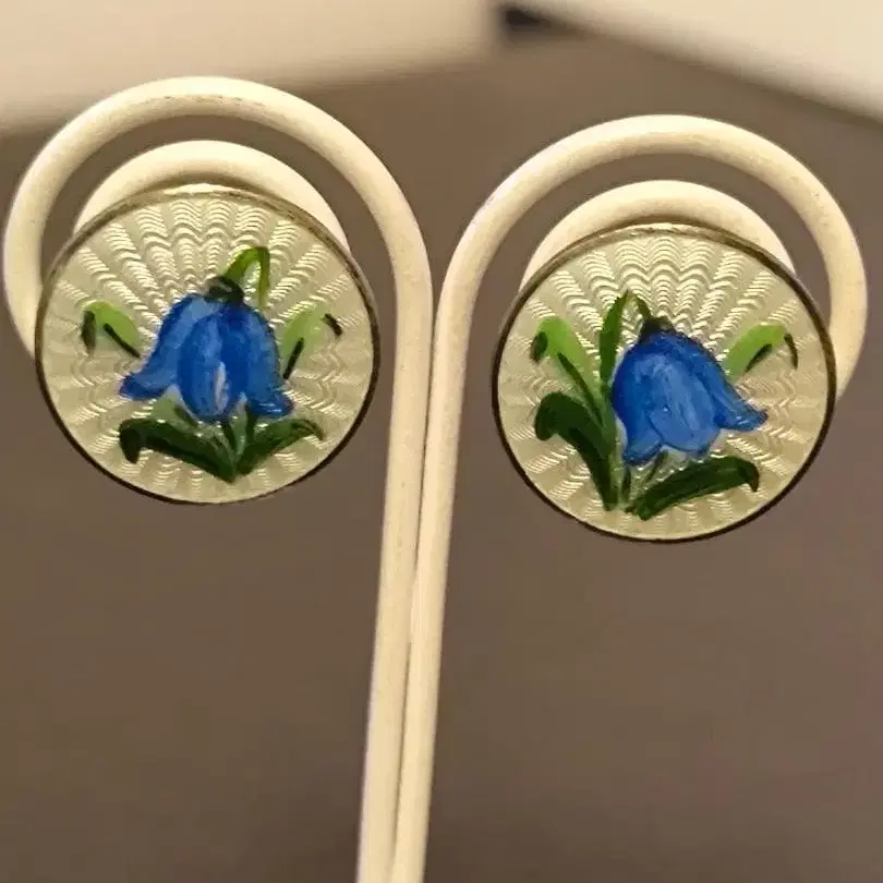 북유럽 노르웨이 빈티지 실버 에나멜 백합 꽃 귀찌
